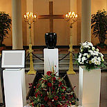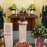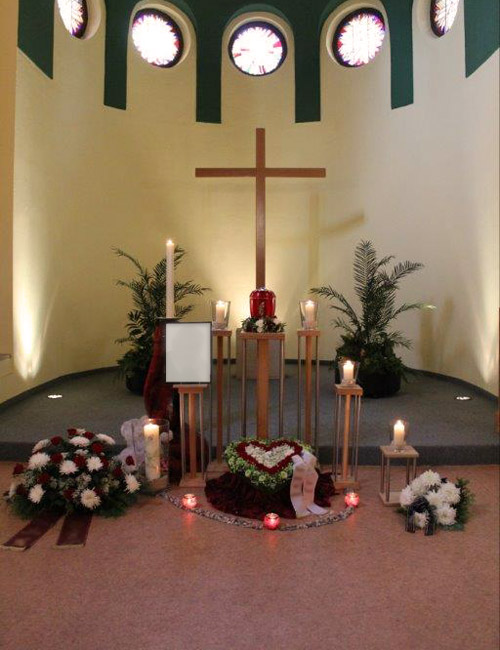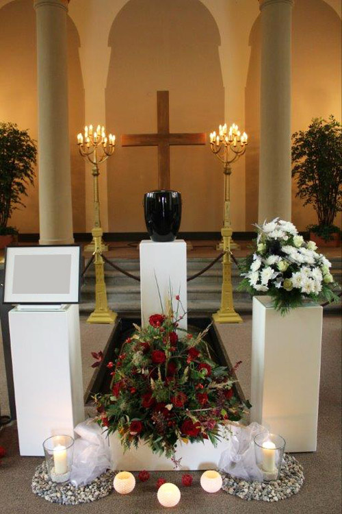 Dies können Sie als Angehörige entscheidend mit beeinflußen. Durch verschiedenste Elemente wird es Ihnen ermöglicht, einen persönlichen Abschied zu gestalten. In unseren eigens dafür vorgesehenen Räumlichkeiten können Sie sich Raum und Zeit zum Abschied nehmen. Trauerfeiern bis zu 30 Personen können individuell und ohne zeitliche Vorgaben ausgestaltet werden.